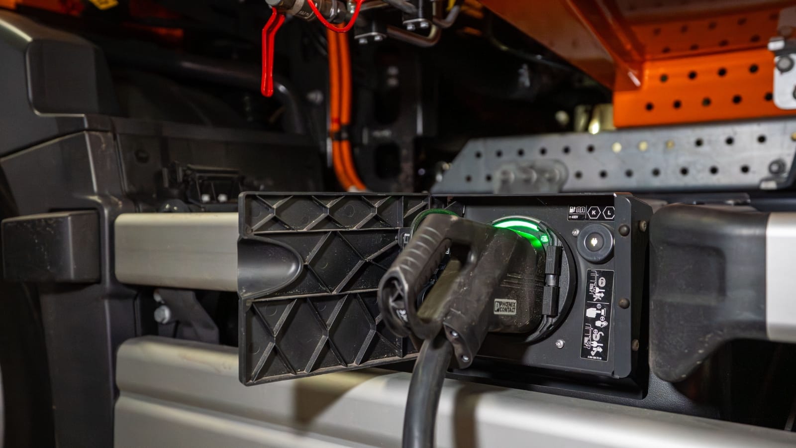 Typical daily mileage sits around 80 km, sometimes passing 100 km. With three battery packs (112 kWh installed, around 97 kWh usable each), the trucks complete a full shift without intermediate charging. Recuperation during stop-start collection helps extend range further.